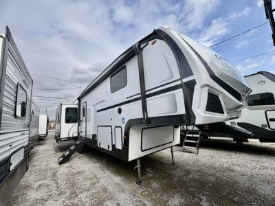 Sleeps 8 Slides 4 Length 39 ft 9 in Ext Width 8 ft Ext Height 12 ft 10 in Interior Color Linen, Carbon Hitch Weight 2100 lbs GVWR 14000 lbs Dry Weight 11449 lbs Cargo Capacity 2551 lbs Fresh Water Capacity 48 gals Grey Water Capacity 90 gals Black Water Capacity 45 gals Tire Size 16" Number Of Bunks 2 Available Beds Queen Refrigerator Type Side by Side Stainless Glass 12V Refrigerator Size 16 cu ft Cooktop Burners 3 Shower Size 30" x 48" Number of Awnings 1 Water Heater Type On Demand AC BTU 27000 btu TV Info LR 50" 4K Smart LED TV Awning Info 18' Electric with LED Light Strip Axle Count 2 Washer/Dryer Available Yes Shower Type Standard Electrical Service 50 amp Similar Fifth Wheel Floorplans
