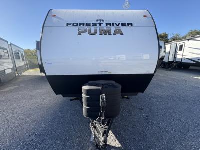 The Puma Camping Edition by Forest River offer an affordable travel trailer for rookie campers or seasoned RVers! They are built with 5/8" tongue and groove plywood flooring and a front diamond plate for added protection. There are also exterior magnetic baggage door latches, back up camera prep, a battery disconnect. Head inside to find Thermofoil countertops with a smooth drop edge, bedroom USB ports and outlets, and pleated shades in the living room.