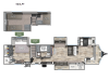 Sleeps 9 Slides 4 Length 42 ft 9 in Ext Width 8 ft Ext Height 11 ft 9 in Hitch Weight 1425 lbs GVWR 12654 lbs Dry Weight 10454 lbs Cargo Capacity 2200 lbs Fresh Water Capacity 43 gals Grey Water Capacity 70 gals Black Water Capacity 70 gals Number Of Bunks 3 Available Beds King Refrigerator Type Stainless Steel w/Ice Maker Refrigerator Size 18 cu ft Cooktop Burners 3 Shower Size 32" x 40" Number of Awnings 1 LP Tank Capacity 30 lbs Water Heater Capacity 12 gal Water Heater Type Gas/Electric DSI AC BTU 13500 btu Awning Info 21' Axle Count 2 Number of LP Tanks 2 Shower Type Shower w/Seat Electrical Service 50 amp Similar Floorplans
