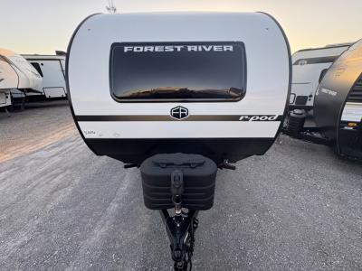 With any R-Pod travel trailer by Forest River, you will enjoy affordable luxury at the lowest tow weight in its class! There is a sealed underbelly with forced heat, a curved dual-pane acrylic front window with a bug screen and night shade, plus a large roof mounted solar panel for off-grid capabilities. The 15K A/C unit will keep you comfortable during the summer camping months, and the tankless water heater will provide endless hot showers after hiking, biking, swimming and more! Each model also includes a black glass friction hinge entrance door, roof ladder prep, exterior motion lighting, plus a hot and cold exterior spray port to wash off sand from the beach. Inside, you'll enjoy seamless Surf-X kitchen countertops, blackout roller shades, and a central vacuum system for hassle-free cleaning!