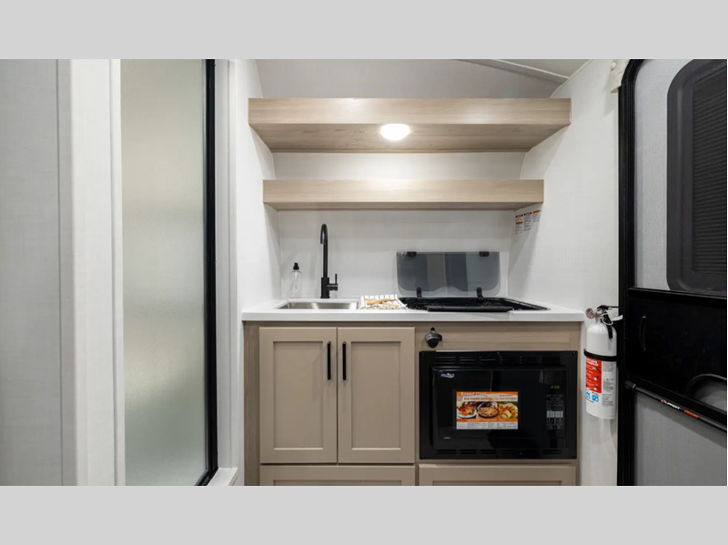 Sleeps 2 Length 12 ft 3 in Ext Width 7 ft 4 in Ext Height 7 ft 3 in Hitch Weight 200 lbs Dry Weight 1903 lbs Cargo Capacity 937 lbs Fresh Water Capacity 20 gals Grey Water Capacity 6 gals Tire Size 15" Furnace BTU 20000 btu Refrigerator Type 12V Convection Cooking Yes Cooktop Burners 3 Number of Awnings 1 LP Tank Capacity 20 lbs Water Heater Type On Demand AC BTU 11000 btu Awning Info 8' Power Axle Count 1 Number of LP Tanks 2 Shower Type N/A Similar Floorplans