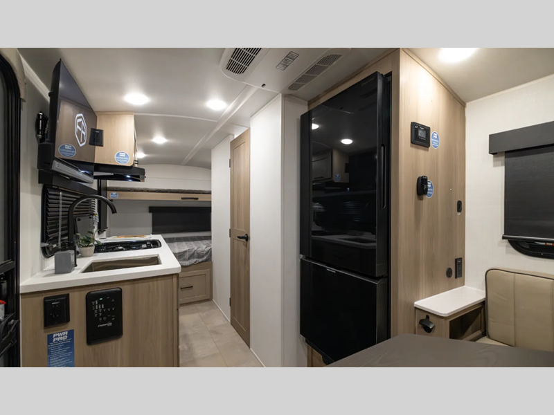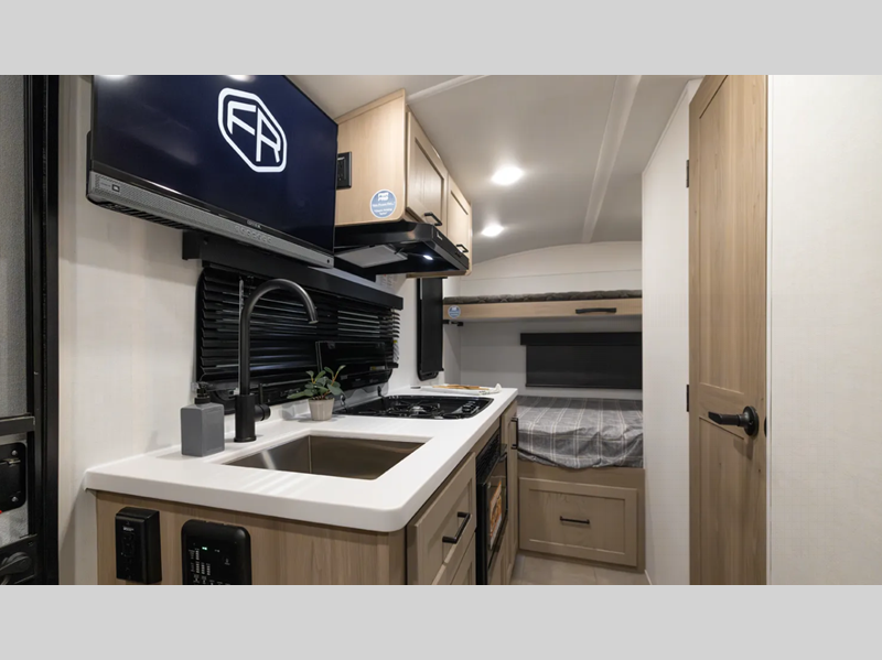 Sleeps 6 Slides 1 Length 21 ft 2 in Ext Width 7 ft 8 in Ext Height 10 ft 4 in Hitch Weight 501 lbs Dry Weight 3843 lbs Cargo Capacity 1155 lbs Fresh Water Capacity 31 gals Grey Water Capacity 27 gals Black Water Capacity 27 gals Furnace BTU 20000 btu Number Of Bunks 2 Available Beds Full Refrigerator Type 12V Convection Cooking Yes Cooktop Burners 3 Number of Awnings 1 LP Tank Capacity 20 lbs Water Heater Type Gas/Electric AC BTU 13500 btu TV Info 12V Smart TV Awning Info 14' Power Axle Count 1 Number of LP Tanks 2 Shower Type Tub/Shower Combo Similar Floorplans