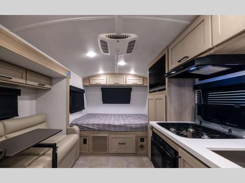 Sleeps 3 Slides 1 Length 20 ft 2 in Ext Width 7 ft 8 in Ext Height 10 ft 1 in Hitch Weight 500 lbs Dry Weight 3602 lbs Cargo Capacity 898 lbs Fresh Water Capacity 31 gals Grey Water Capacity 27 gals Black Water Capacity 27 gals Furnace BTU 20000 btu Available Beds Murphy Refrigerator Type 12V Convection Cooking Yes Cooktop Burners 3 Number of Awnings 1 LP Tank Capacity 20 lbs Water Heater Type Gas/Electric AC BTU 13500 btu TV Info 12V Smart TV Awning Info 14' Power Axle Count 1 Number of LP Tanks 2 Shower Type Standard Solar Wattage 200 watts Similar Floorplans
