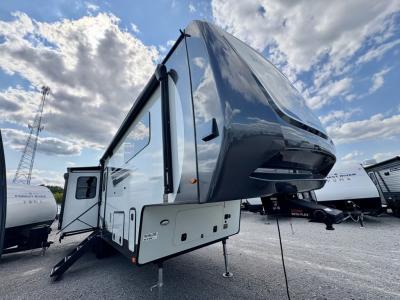 Sleeps 4 Slides 3 Length 36 ft 10 in Ext Width 8 ft Ext Height 13 ft 4 in Hitch Weight 1931 lbs Dry Weight 10601 lbs Cargo Capacity 1730 lbs Fresh Water Capacity 54 gals Grey Water Capacity 92 gals Black Water Capacity 53 gals Tire Size 16" Furnace BTU 35000 btu Available Beds King Refrigerator Type 12V Cooktop Burners 3 Number of Awnings 2 LP Tank Capacity 30 lbs Water Heater Capacity 12 gal Water Heater Type Quick Recovery Auto Ignition Gas/Electric TV Info LR Smart TV Awning Info 10' and 17' Power with Adjustable Rain Dump and LED Light Strip Axle Count 2 Washer/Dryer Available Yes Number of LP Tanks 2 Shower Type Shower w/Seat Electrical Service 50 amp Similar Fifth Wheel Floorplans