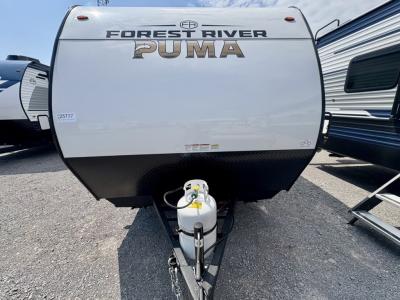 The Puma Camping Edition by Palomino offer an affordable travel trailer for rookie campers or seasoned RVers! They are built with 5/8" tongue and groove plywood flooring and a front diamond plate for added protection. There are also exterior clamp style door latches, back up camera prep, and 20 lb. LP bottles. Head inside to find Thermofoil countertops with a smooth drop edge, bedroom USB ports and outlets, and a GE appliance and kitchen package.