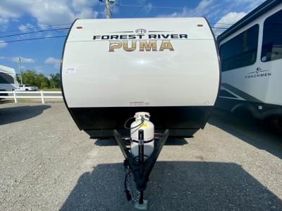 The Puma Camping Edition by Palomino offer an affordable travel trailer for rookie campers or seasoned RVers! They are built with 5/8" tongue and groove plywood flooring and a front diamond plate for added protection. There are also exterior clamp style door latches, back up camera prep, and 20 lb. LP bottles. Head inside to find Thermofoil countertops with a smooth drop edge, bedroom USB ports and outlets, and a GE appliance and kitchen package.
