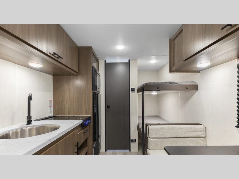 Sleeps 5 Slides 1 Length 22 ft 5 in Ext Width 7 ft 4 in Ext Height 10 ft 10 in Hitch Weight 565 lbs Dry Weight 4034 lbs Cargo Capacity 931 lbs Fresh Water Capacity 42 gals Grey Water Capacity 34 gals Black Water Capacity 34 gals Number Of Bunks 2 Available Beds Camp Queen Bed Refrigerator Type 12V Refrigerator Size 10.6 cu ft Cooktop Burners 2 Number of Awnings 1 Water Heater Type Tankless On Demand AC BTU 13500 btu Awning Info 10' Power Axle Count 1 Shower Type Standard Electrical Service 30 amp Similar Floorplans